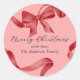 Élégant stickers de Noël avec un arrière - plan rose mignon, beau ruban d'aquarelle rouge et arc. Complétez avec votre nom de famille, et les Joyeuses Fêtes "joyeux noël".