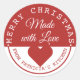 Sticker Rond Joyeux Noël Rouge Et Blanc Fait Avec Amour