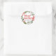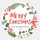 Sticker Rond Joyeux Noël Rouge Script Aquarelle Holly Wreath