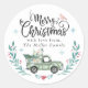 Joyeux Noël Rustic Green Camion Hiver Floral Classic Round Sticker
