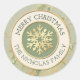 Sticker Rond Joyeux Noël Sage Vert et Or Snowflake Nom