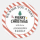 Belle rayure rouge et blanc "Joyeux Noël" Sticker rond Cerf-Arbre-Star Classic.