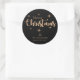Autocollant Rond Classique avec Typographie de Noël en Faux Or Noir . Ajoutez une touche de sophistication à votre emballage de fêtes avec cet Autocollant Rond Classique avec Typographie de Noël en Faux Or Noir. Caractérisé par une élégante typographie en faux or sur fond noir épuré, cet autocollant personnalisable est parfait pour sceller les cartes de Noël, les sacs cadeaux ou les faveurs de fête. Personnalisez-le avec votre nom ou le nom de votre famille pour une touche de Noël chic et moderne.