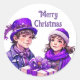 Enfants adorables, garçon et fille, frère et soeur en violet Joyeux autocollants de Noël.