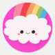 Sticker Rond Joyeux nuage arc-en-ciel sur rose chaud