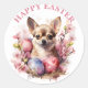 Sticker Rond Joyeux oeufs et fleurs de Chihuahua de Pâques -