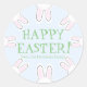 Happy Easter sauge vert rose blanc et bleu pâle texte personnalisé lapins lapins mignonettes moderne amusant Stickers Classic rond, étiquettes cadeaux personnalisées.