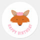 Sticker Rond Joyeux Renard d'anniversaire