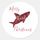 Sticker Rond Joyeux requin Noël Rouge en plaid Script