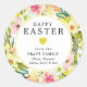 Des jonquilles jaune vif entourées de verdure créent une belle bordure sur cette enveloppe de Pâques joyeuse scellée. Les fleurs roses ajoutent encore plus de couleurs printanières. Un coeur jaune au centre divise Happy Easter de vos noms de famille. Parfait pour décorer les cartes de Pâques ou les invitations à Brunch de Pâques.