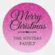 Une parties scintillant rose chaud moderne, fausse ombre sticker Joyeux Noël ou sceau d'enveloppe que vous pouvez personnaliser avec votre nom de famille ou vos noms. La parties scintillant rose vif, à l'ombre du motif, se fonde sur un arrière - plan blanc. Le texte "Joyeux Noël" en noir est mis en écriture moderne. Enveloppe de Noël parfaite avec motif moderne, pétillant, luxe et glamour.