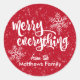 Un autocollant amusant et festif pour vos cadeaux de vacances, faveurs et mailings, ce design rouge et blanc joyeux dispose d'un motif de neige hivernal avec texte de script contemporain dans une police brushscript. Personnalisez avec votre nom ou autre texte en remplaçant le nom de l'exemple indiqué dans le modèle de conception. Cet autocollant est disponible en 2 tailles. La plus petite taille de 1 1/2" fonctionne bien pour les petits articles et les scellés d'enveloppe, tandis que la plus grande taille de 3" fait un choix merveilleux pour les plus grands cadeaux, les faveurs de fête et bien plus encore.