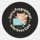 Un design génial et amusant montrant un chat sur l'ordinateur et le dicton "Juste un programmeur qui aime les chats". Un must pour tous les programmeurs et amoureux de les chats.