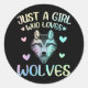 Sticker Rond Juste une fille qui aime les loups mignons