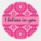 Une conception rose assez girly sur des autocollants avec le message "que je crois en vous" sur eux. Le texte est personnalisable ou peut être enlevé aussi bien que la rayure rose. C'est une grande manière de montrer l'appui à d'autres qui peut souffrir du bas amour-propre imposé par d'autres ou abus verbal et émotif.