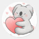 Sticker Rond Kawaii Koala Hugging Coeur adorable