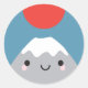 Une joyeuse montagne du Mont Fuji sous un soleil rouge. Parfait pour les fans du Japon et des personnages kawaii.