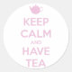 Sticker Rond Keep Calm and Have Tea Pink on White