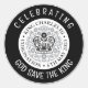 Sticker de couronnement KING CHARLES III, en NOIR, avec TEXTE PERSONNALISABLE. Le design montre le rose d'Angleterre, le chardon d'Ecosse, la jonquille du Pays de Galles et le shamrock d'Irlande du Nord dans le magnifique emblème floral officiel rouge et bleu. Le texte dit DIEU SAVE LE ROI. Vous pouvez PERSONNALISER CE TEXTE avec votre propre libellé, par exemple ajouter votre nom de famille/d'organisation. Le libellé incurvé est PERSONNALISABLE, vous pouvez donc AJOUTER VOTRE NOM ici à la place. Ce Sticker de couronnement du roi Charles III vous permettra de montrer votre soutien à cette occasion capitale de l'histoire royale britannique. Idéal pour des cadeaux ou des marchandises lors de vos fêtes et événements de couronnement privés et publics. Aussi en rouge et bleu.