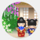 Sticker Rond Kokeshi Dolls et Teahouse
