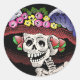 Adaptation de "La Calavera Catrina" de José Guadalupe Posada en 1913, cette version a été simplifiée, nettoyée et colorée. Parfait pour célébrer la fête mexicaine "Dia de los Muertos" (Le Jour des Morts) les 1er et 2 novembre. La feuille de 20 petits autocollants ronds est idéale pour les enveloppes pour les cartes et les invitations, ou utilisée pour décorer des sacs de cadeaux pour votre Halloween/Jour des Morts.
