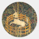 Stickers avec la tapisserie médiévale La licorne en captivité (1495-1505). La septième tapisserie de The Unicorn Tapestries, également connue sous le nom de The Unicorn Rests in a Garden, montre une licorne blanche avec un collier bleu assis à l'intérieur d'une clôture. L'herbe verte et de belles fleurs entourent la licorne. Un cadeau fantastique pour les collectionneurs d'art médiéval et les amateurs d'imaginaires !