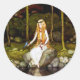 Belle illustration de John Bauer d'une belle princesse aux longs cheveux blonds, assise sur un rocher au bord d'un lac dans la forêt, avec un bleuet perché sur sa main. De l'histoire, "La princesse dans la forêt".