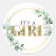 Verdure C'est une Girl Gold Eucalyptus Baby shower Classic Round Sticker. Doté d'un feuille d'eucalyptus aquarelle, d'un cadre rond doré et d'un texte de FILLE en feuille d'or.