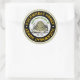 Colorful drawing of a vintage skep beehive with bees flying about, personalized with the type of honey and your professional business name, address and net weight of the honey. Add extra spaces between the words of the round text to adjust the position on the broer. Change the background color when you choose a different Design Theme. ⬢ The skep was made of straw or wicker, oft covered in mud, and used in the late Medieval period, before the discovery of the "bee space" and subsequent invention of the modern stroth, Top-bar or Warre bee hives. Because harvesting honey from the skep destroys the hive and upsets the bees, these types of hives are seldom used, but the symbole carries on.