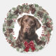 Regardez ce beau visage de Labrador Retriever au chocolat encadré par un joli cône de pin aquarelle et une couronne de Fêtes aux baies rouges ! L'image du chien est au centre sur un arrière - plan blanc. Un arc rouge brillant donne un peu de luminosité à la couronne pour Noël. Parfait pour vos forfaits vacances ou votre correspondance.