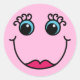 Cette femme emoji a un visage rose, des yeux bleus, de longues cils et un rouge à lèvres rose chaud.