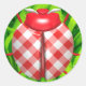 Sticker Rond Ladybug grass en vichy vérifier mignon rouge blanc