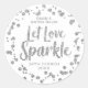 Ce magnifique sticker de confettis blanc et argent parties scintillant dit "Let Love Sparkle" et il peut être placé sur une étiquette maison pour vos mousseux! Il vous suffit de changer les noms et la date du mariage en cliquant sur "personnaliser". Il peut également être placé sur une bougie de soja ou une boîte de allumettes comme une faveur de mariage.
