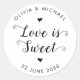 Un Sticker Mariage classique en Merci noir avec "L'amour est doux" dans une calligraphie de police moderne et rustique. Vous pouvez facilement le personnaliser avec vos noms et date mariage.