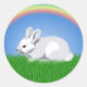 Lapin de Pâques assis dans l'herbe sur l'arrière - plan arc-en-ciel. Illustration numérique