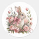 Sticker Rond Lapin de Pâques Arc Rose Fleurs