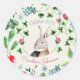 Un joli marché d'agriculteurs botaniques merci sticker avec des légumes et du trèfle autour d'un lapin animal