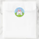 stickers lapin Merci. Un lapin lapin lapin blanc avec de grandes oreilles roses et un visage mignon sort de son trou. Il est entouré d'herbe verte et de jolies fleurs sous un ciel bleu clair. Au-dessus du lapin se trouvent les mots Merci en lettres roses.