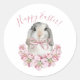 Sticker Rond Lapin mignon écriture joyeuse de Pâques à fleurs r