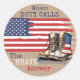 Ce "When Duty Call The Brave Answer" Les bottes de combat du drapeau américain Going Away / Farewell Party piks et les autocollants ronds, avec un arrière - plan kraft rustique, sont un moyen personnalisé et mémorable de célébrer votre courageux Airman (Air Force), Guardian (Space Force), Soldier (Armée), Marine (Marines), marin (Marine), ou garde côtière tireur (Garde côtière) qui se dirige vers l'instruction de base (BMT ou BCT), le camp d'entraînement, le déploiement ou la base de service outre-mer. Parfait pour toute branche de service ! ** Conçu par une maman de la Force aérienne fière ** Faites défiler ci-dessous pour voir la collection complète de correspondances pour votre évasion parfaite, y compris des invitations (disponibles pour téléchargement numérique instantané pour ceux qui sont dans une ruée ou Zazzle imprimer & expédier + enveloppes), des panneaux d'accueil, des bannières de fête, des panneaux d'affichage muraux, des décorations de table, et plus ! Cliquez sur le lien bleu "par FigLilyCo—militaire" dans le coin supérieur droit de cet écran pour visiter ma vitrine de Zazzle et voir ma collection de dessins pour partir des fêtes, l'entraînement de base, les cérémonies de remise de diplômes et le service actif! *Les demandes de design personnalisées sont toujours les bienvenues - cliquez sur le bouton "message", ou directement par e-mail (avec temps de réponse rapide !) : contact@figandlilyco.com. De cette fière famille militaire à vous et à la vôtre - nous vous adressons nos plus sincères bénédictions, et nos immenses remerciements pour le service, le courage et le sacrifice de votre futur militaire américain ♥