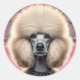 Cette image captivante présente un caniche majestueux au centre duquel trône un manteau blanc et moelleux. Le caniche est entouré d'un éventail d'éléments musicaux qui lui donnent un aspect céleste et iconique.