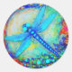 Beautiful glowing blue dragonfly sailing over blue waters and sunlight.