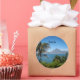 Guatemala photo paysage, volcan et lac, autocollant rond.