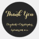 Créez votre propre typographie personnalisée, personnalisée, noire, élégante, script merci autocollant rond. Entrez simplement les noms de la mariée et du marié, de la femme et du mari, et la date du mariage / anniversaire. Élégant autocollant de remerciement pour avoir scellé vos faveurs de fête pour mariage, célébrations d'anniversaire, réceptions, cérémonies ou toute autre occasion spéciale.