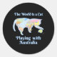 Sticker Rond Le Monde Est Un Chat Jouer Carte
