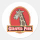 Logo de la Giraffe féroce, avec une girafe de caricature mignonne mais féroce dans un ovale rouge, et légende "Parc de la Giraffic". T-shirts et cadeaux.