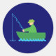 Cette illustration de pêche relaxante présente un pêcheur sur le lac avec un pôle de pêche bleu se reposant dans un bateau vert attendant sa première prise de la journée ! Cette illustration de pêche pop art est le cadeau parfait à acheter pour quiconque aime pêcher!