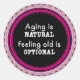 Ceux d'entre nous qui espèrent atteindre notre 100e anniversaire vivent selon cette devise : "Vieillir est naturel ; se sentir vieux est facultatif." Joyosité et attitude positive nous gardent jeunes à coeur et en meilleure santé dans le corps. Cet autocollant est un rappel que l'ajout sur les années n'a pas besoin de diminuer notre zeste pour la vie et le sens de l'aventure.