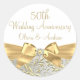 Sticker Rond Leaf Gold Bow Blanc 50e anniversaire Mariage