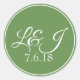 Simples initiales du couple vert feuille et blanc et date mariage en autocollants blancs.